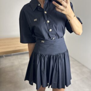 MAVİ DESENLİ ŞORT ETEK KEMERLİ