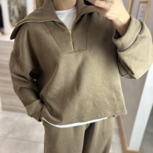MARKA MODEL KAPÜŞONLU TRİKO FERMUARLI TAKIM VİZON