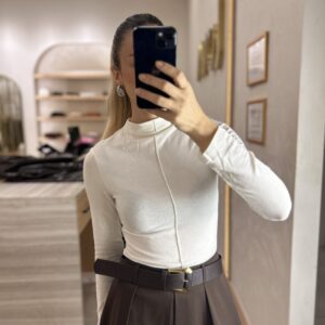 DİKİŞ DETAYLI DİK YAKA YUMOŞ TRİKO EKRU