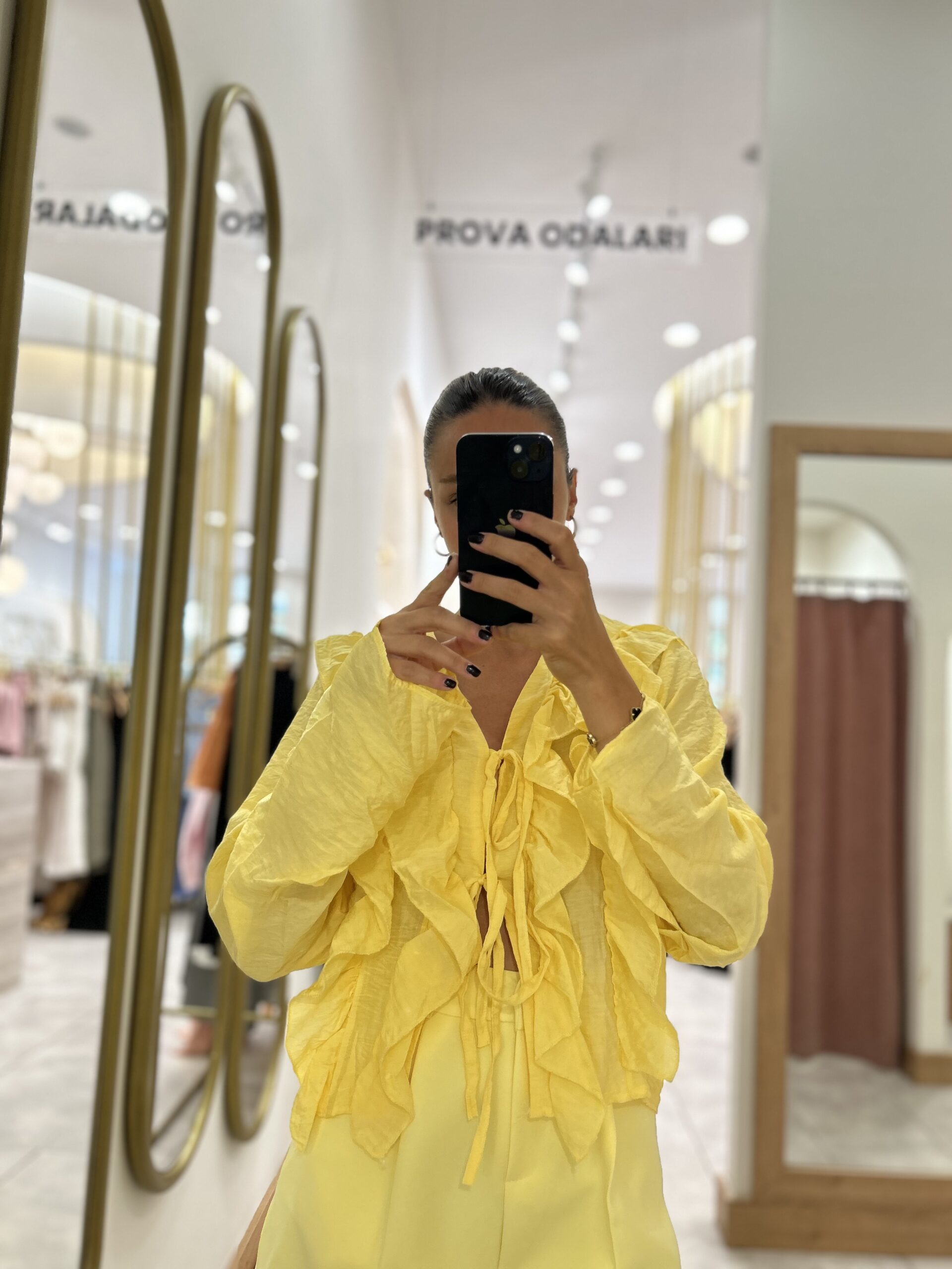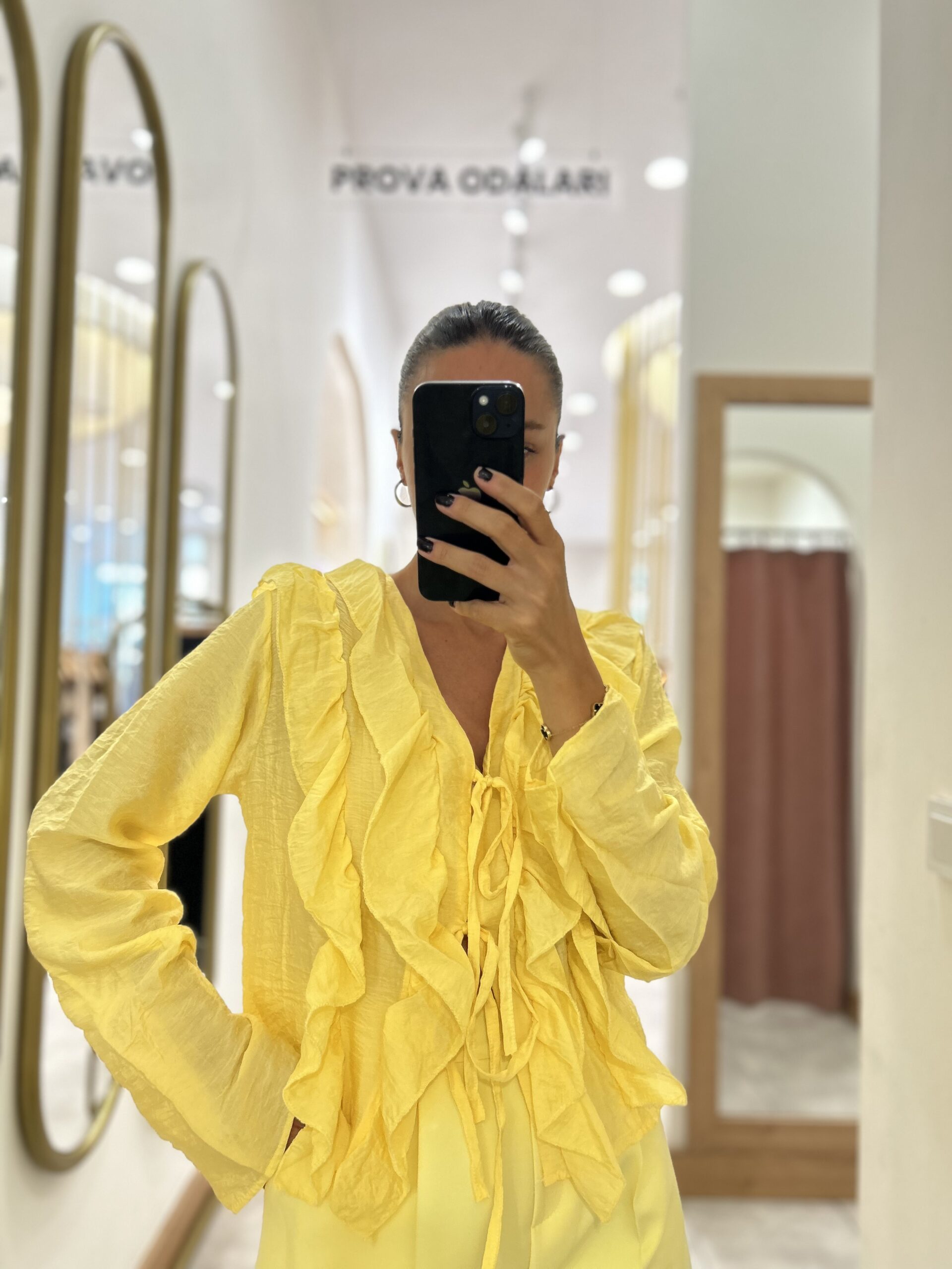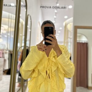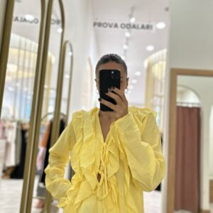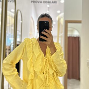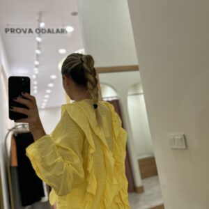 Etiketler: BLUZ, fırfırlı bluz, GÖMLEK, kadıngiyim, sarı, sarı bluz, üst giyim