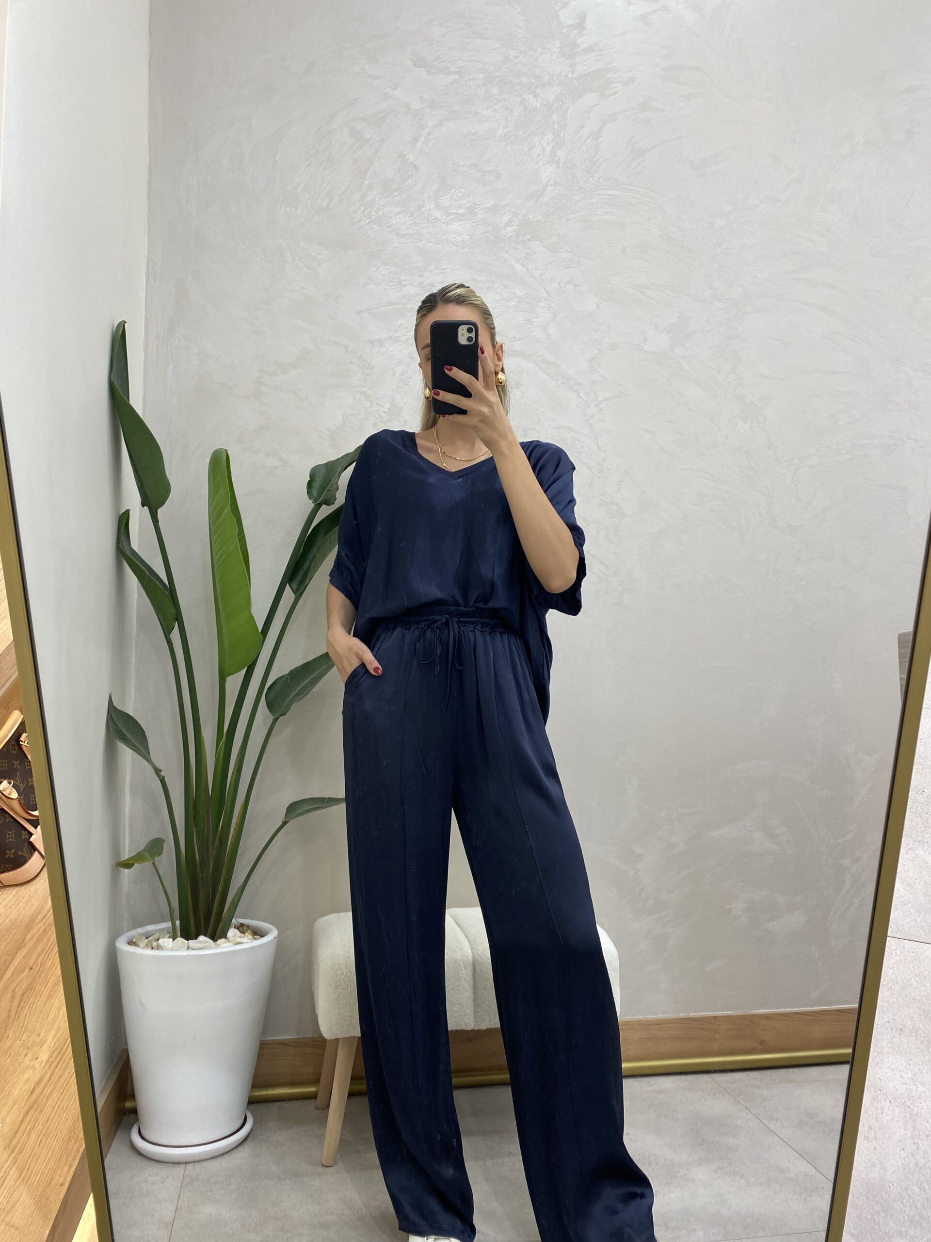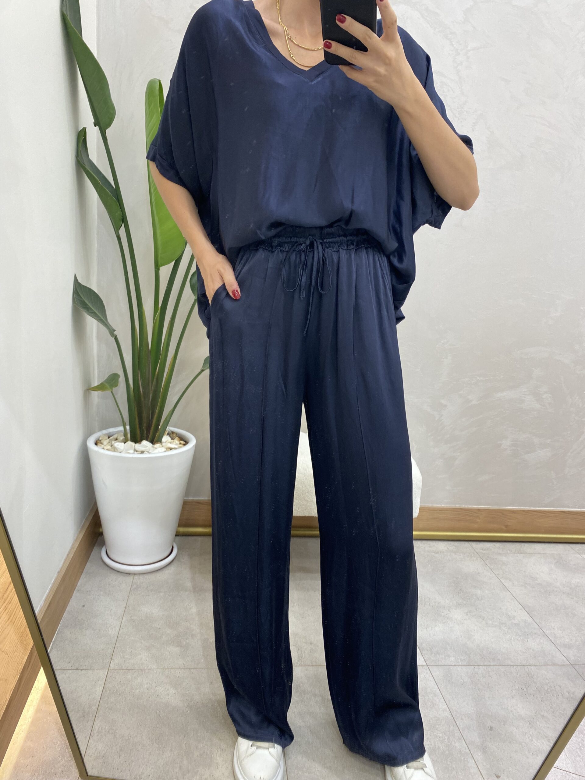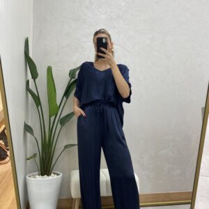 İPEK SATEN LACİVERT TAKIM İTHAL
