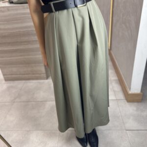 Kemerli Pileli Uzun Etek Yeşil