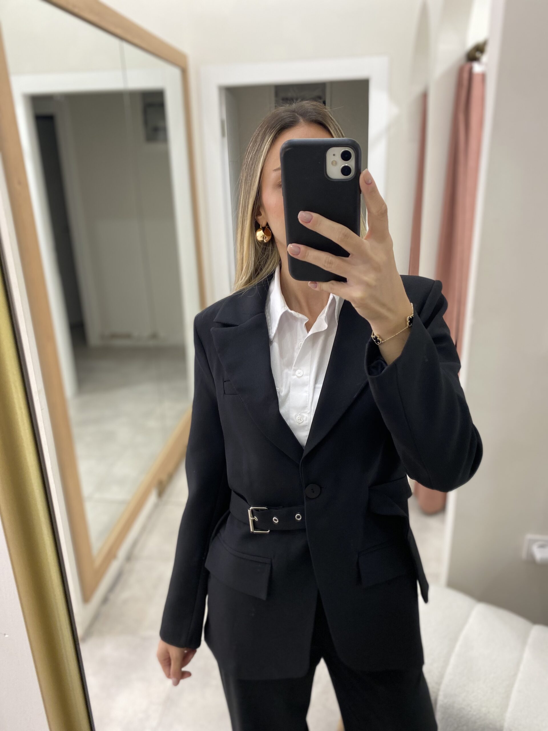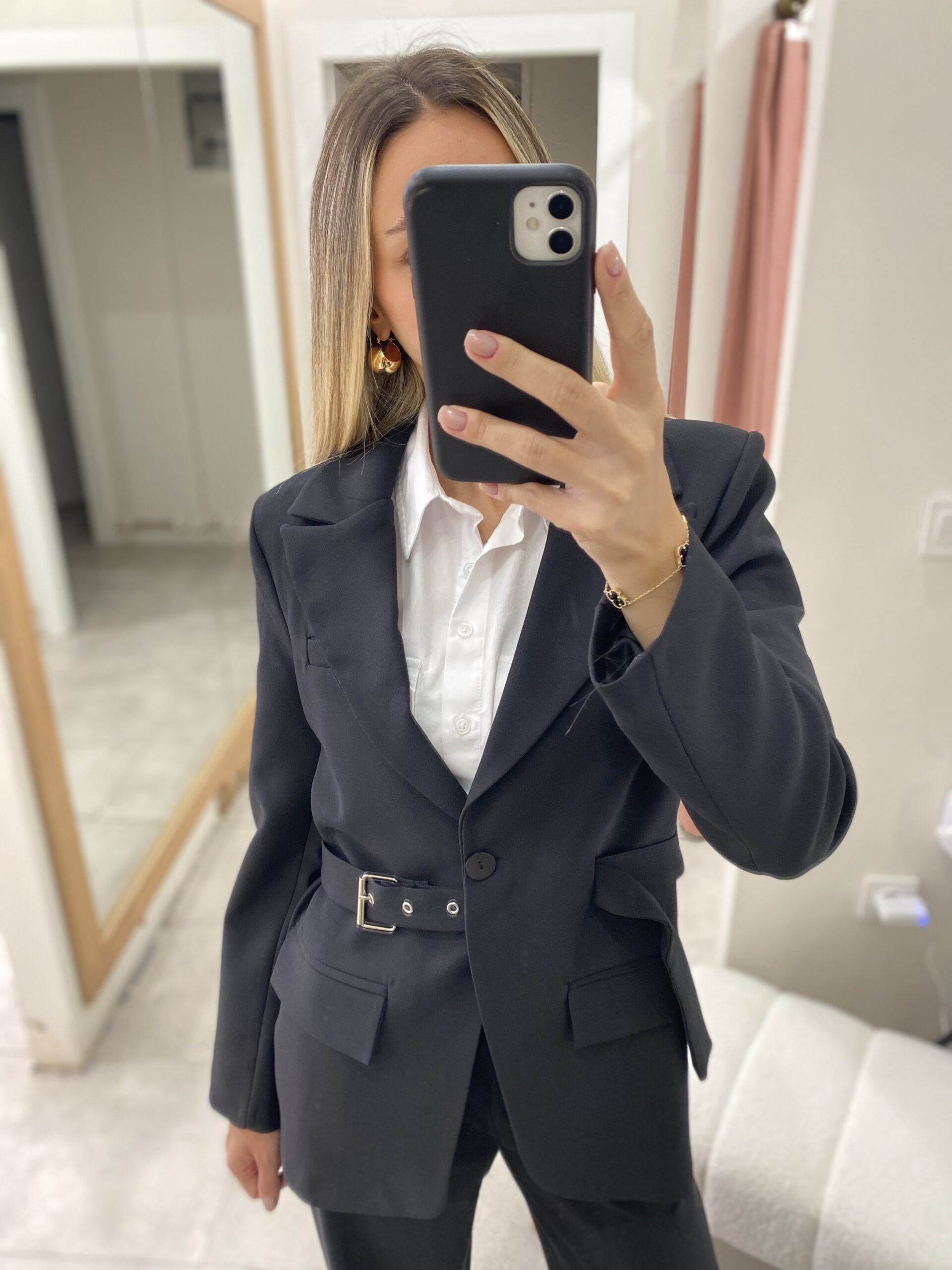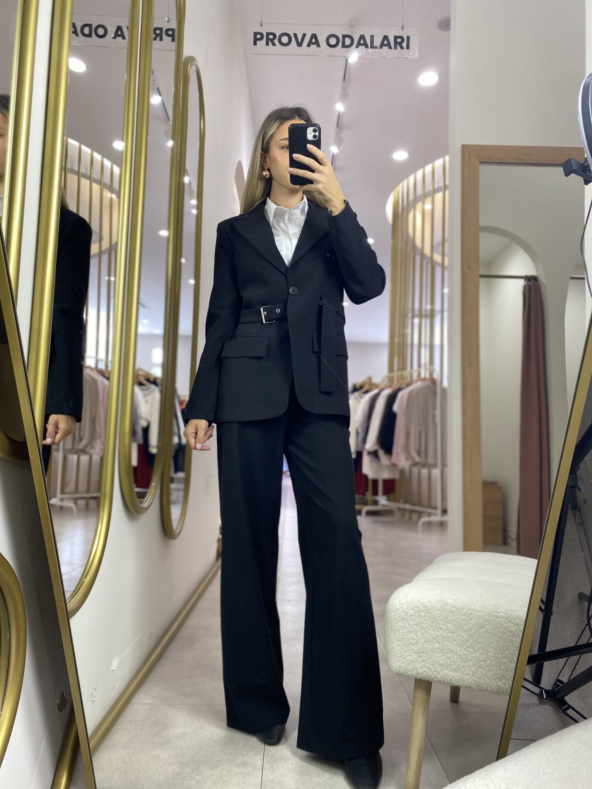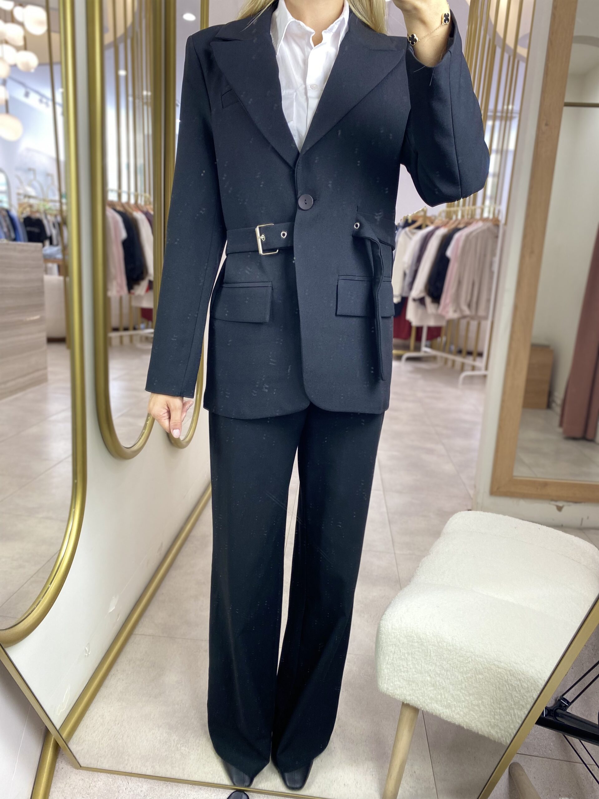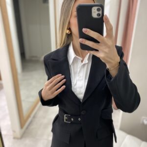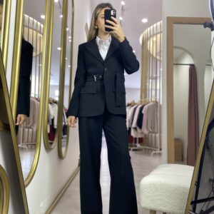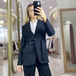 KEMERLİ TASARIM CEKET SİYAH