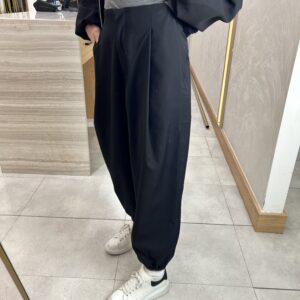 Lastik Detaylı Şalvar Kesim Pileli Pantolon Siyah