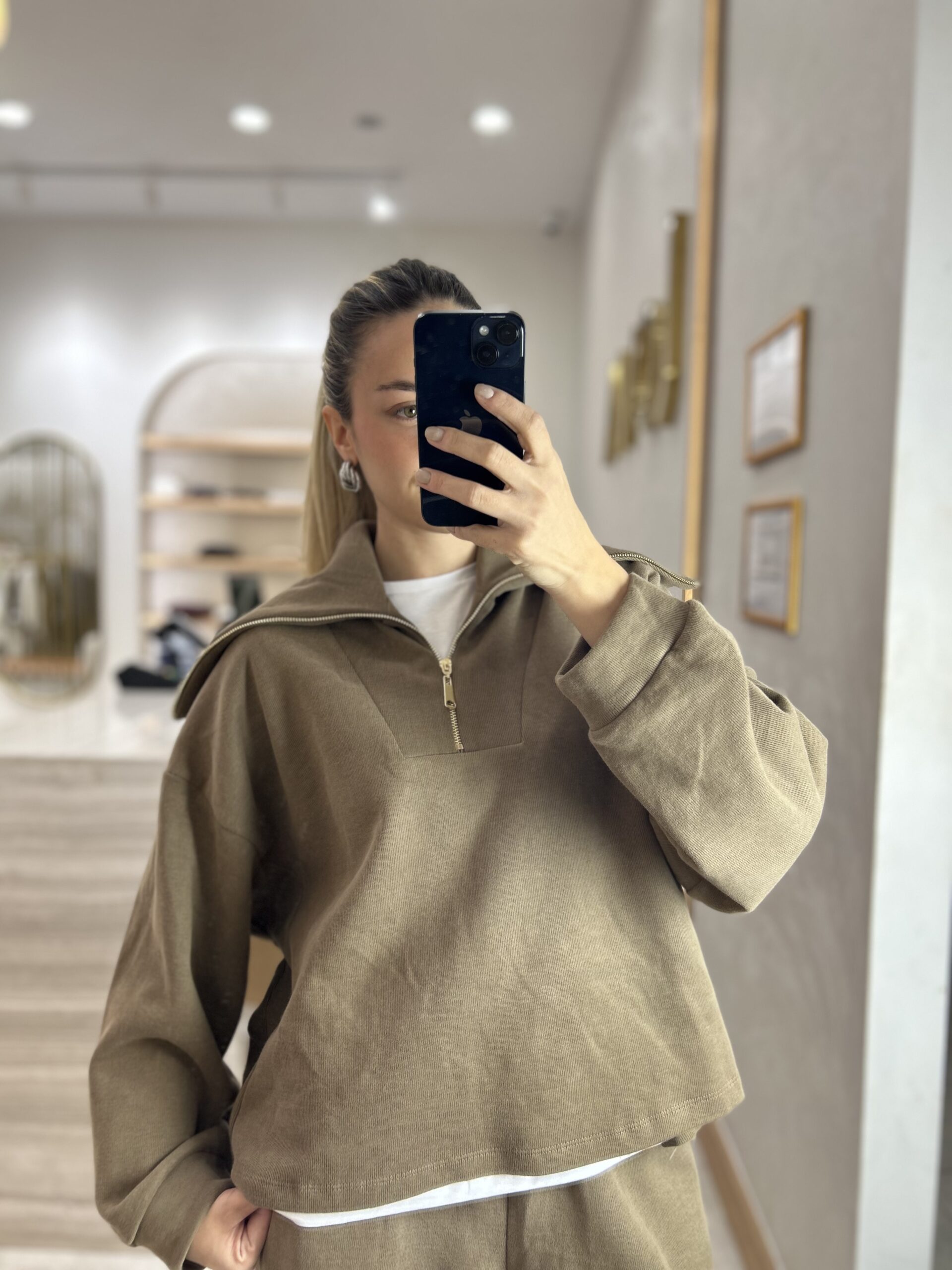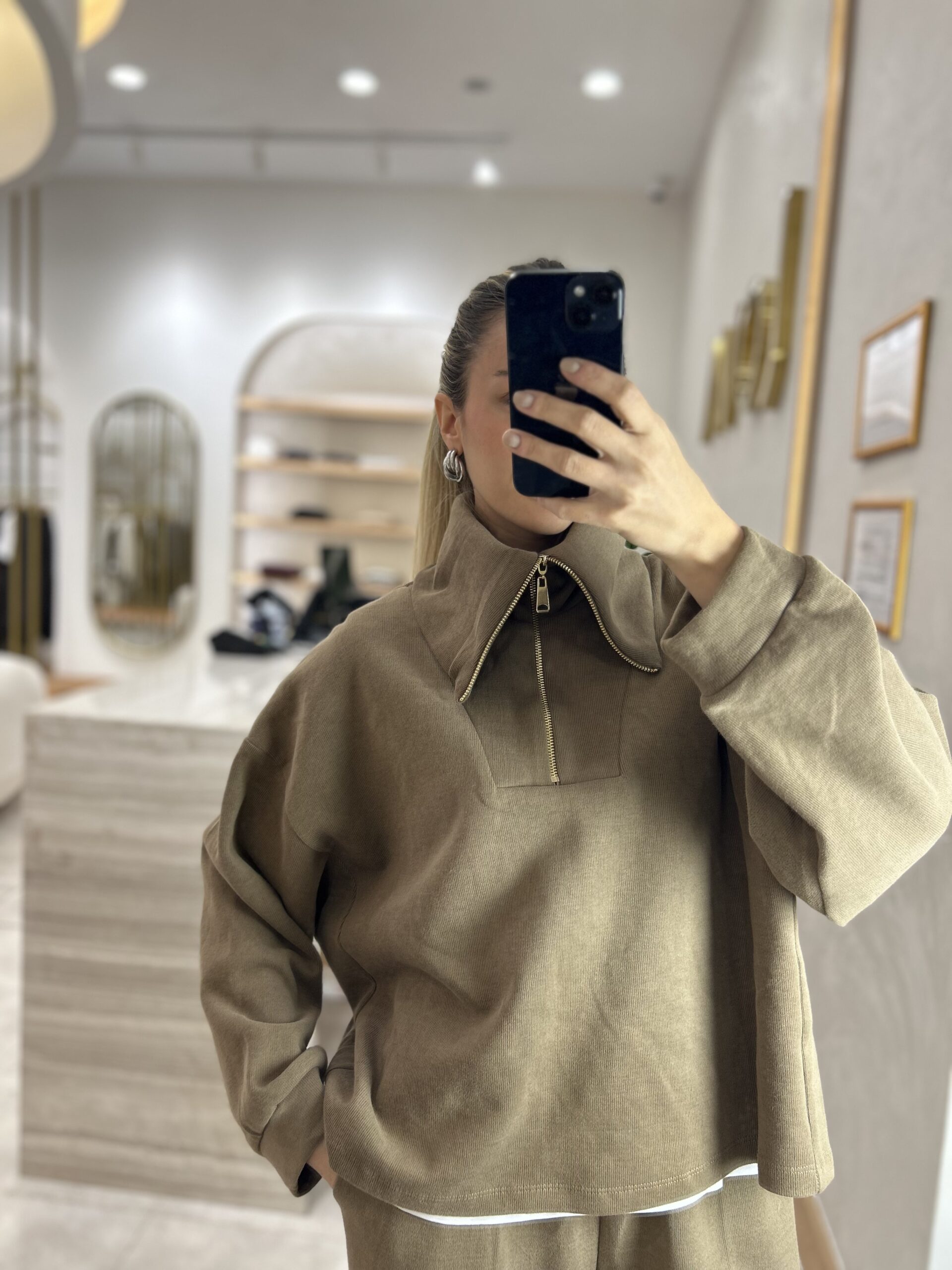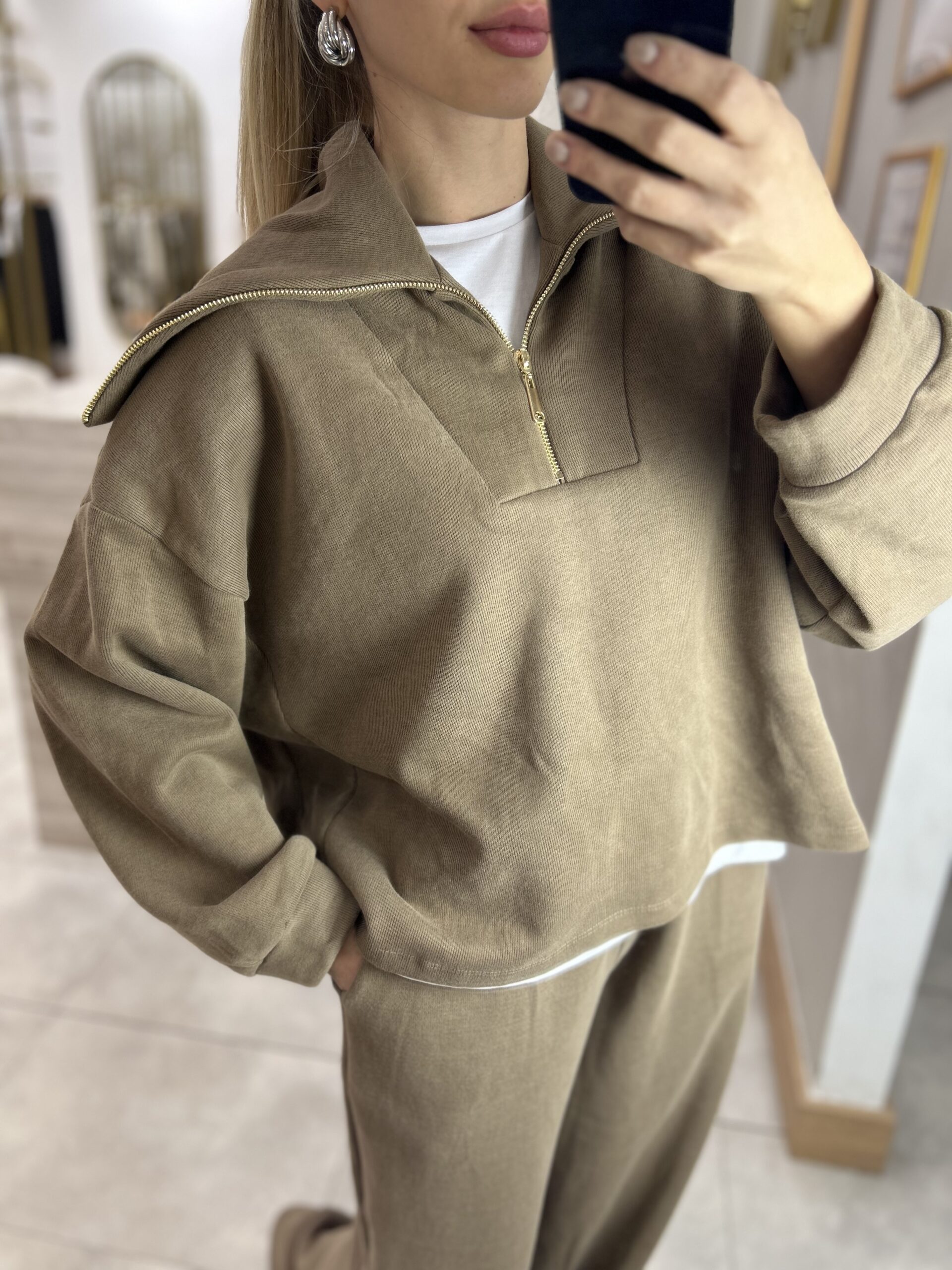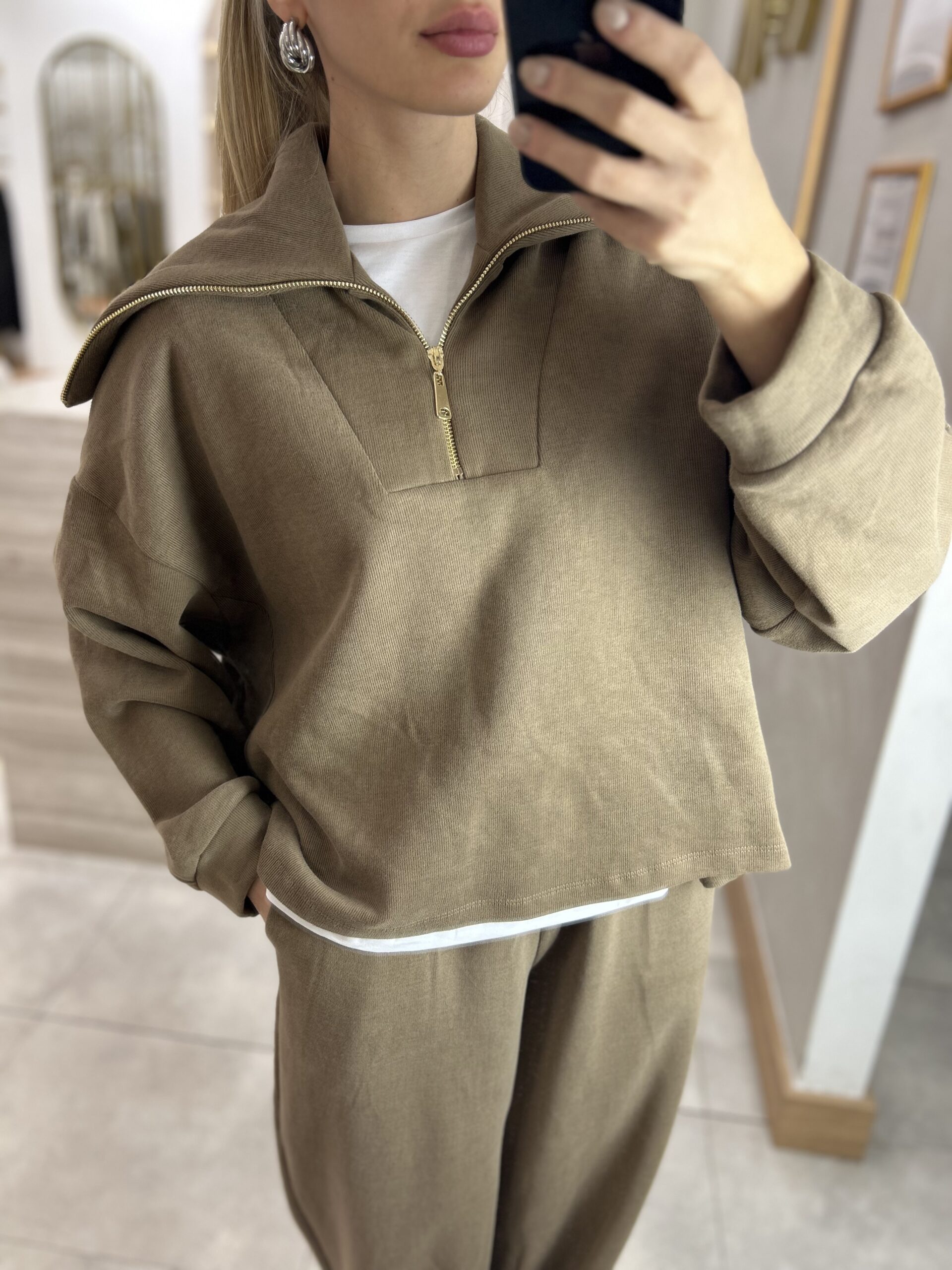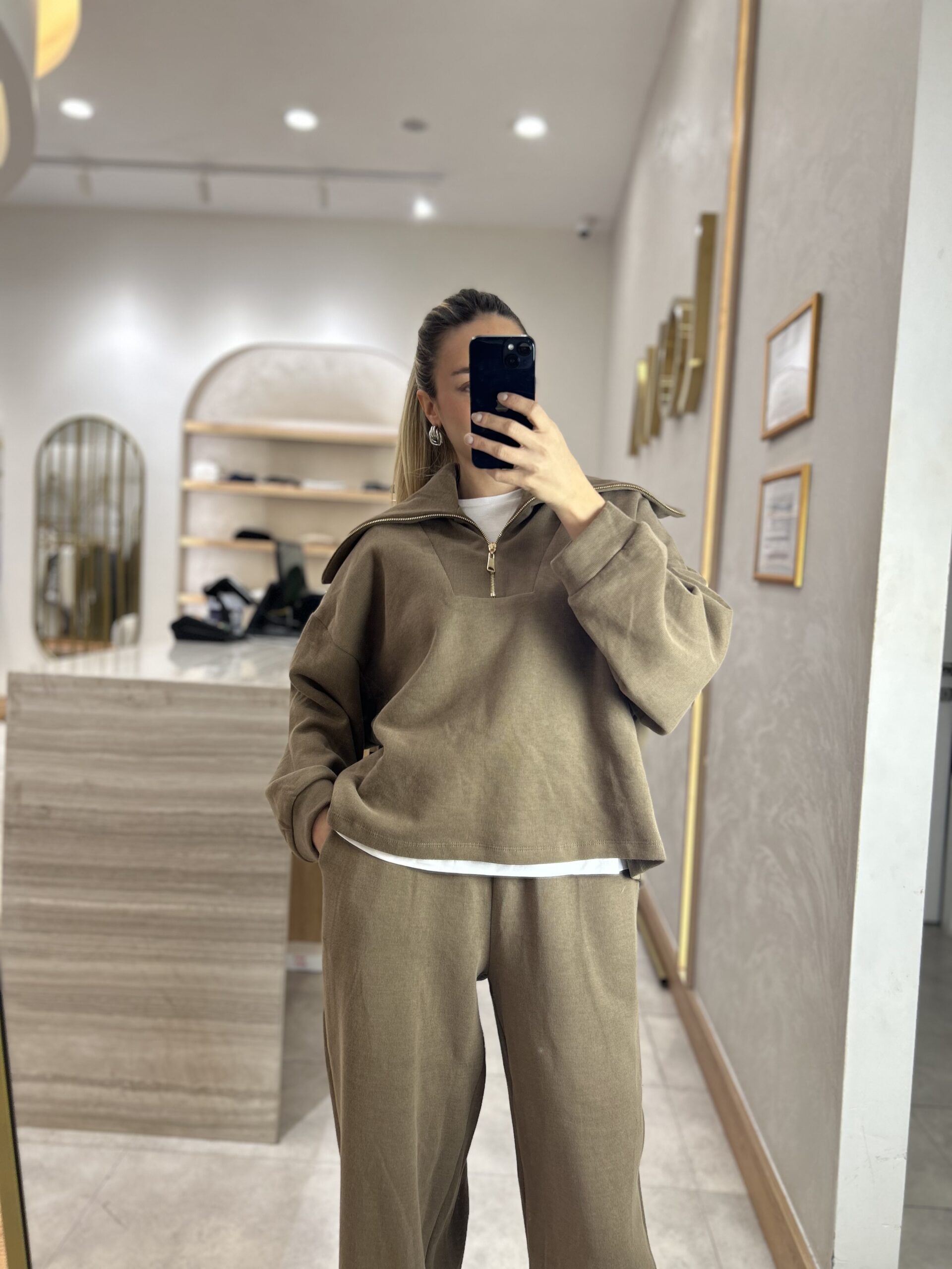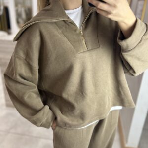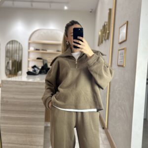 MARKA MODEL KAPÜŞONLU TRİKO FERMUARLI TAKIM VİZON