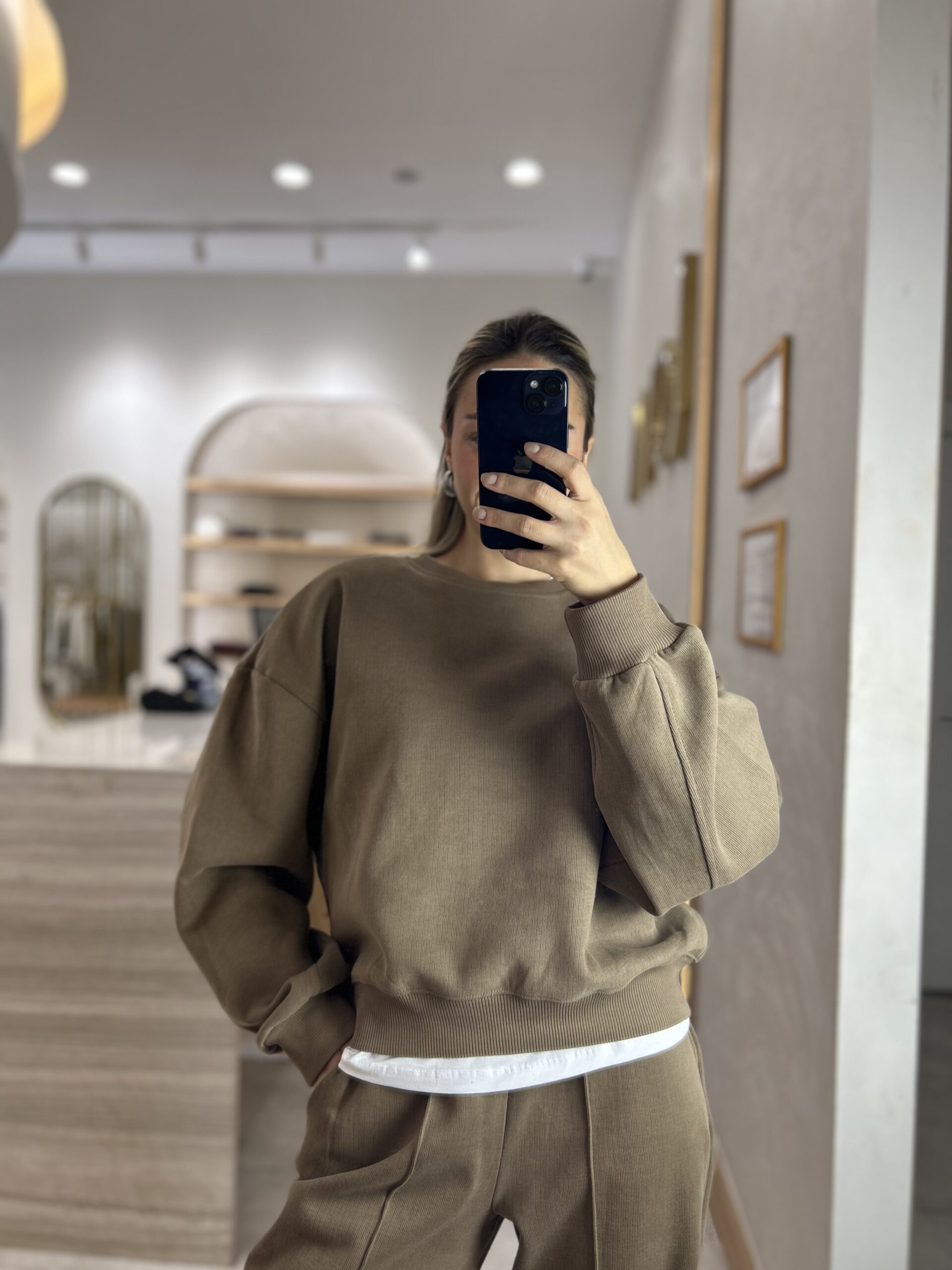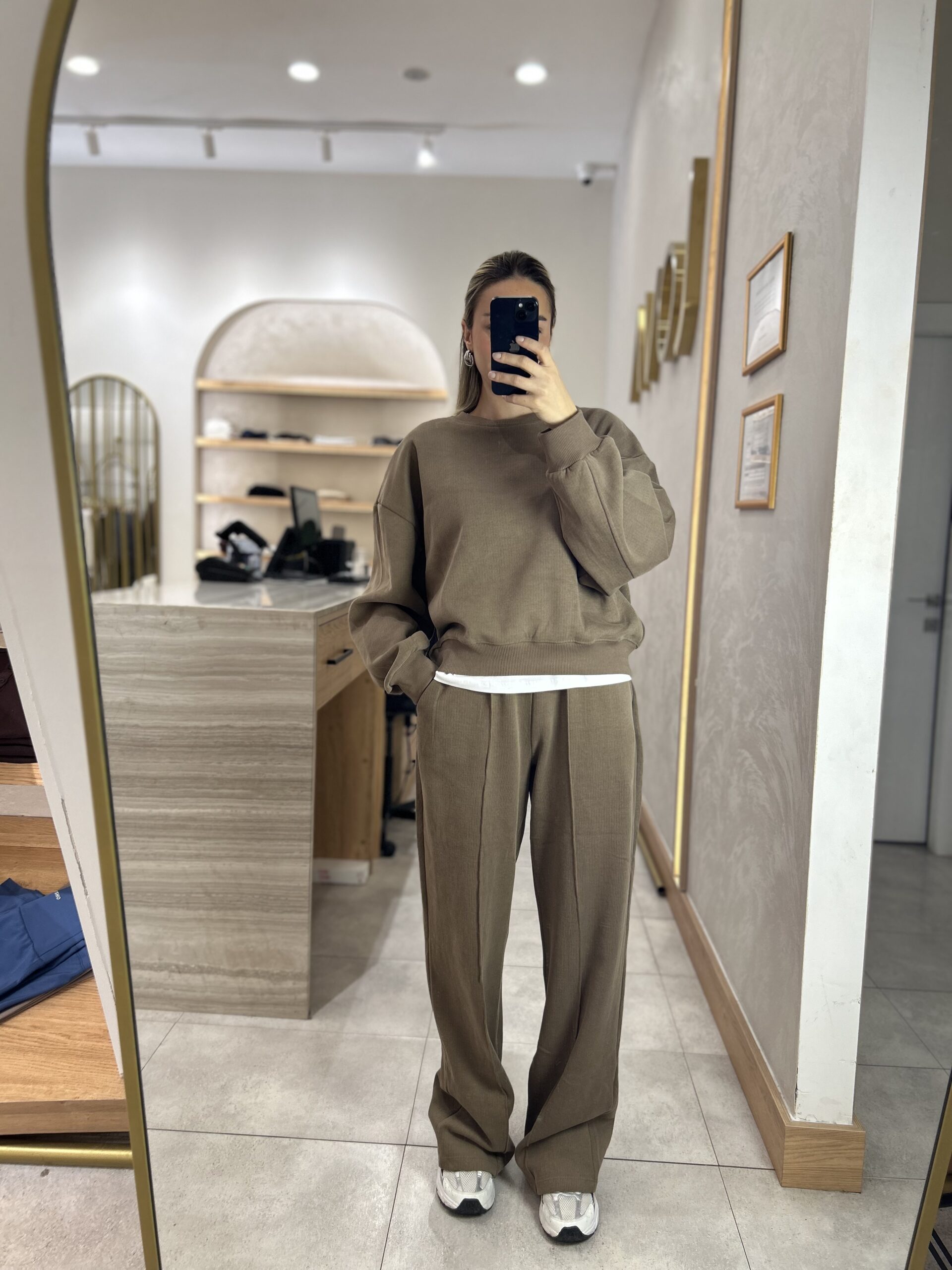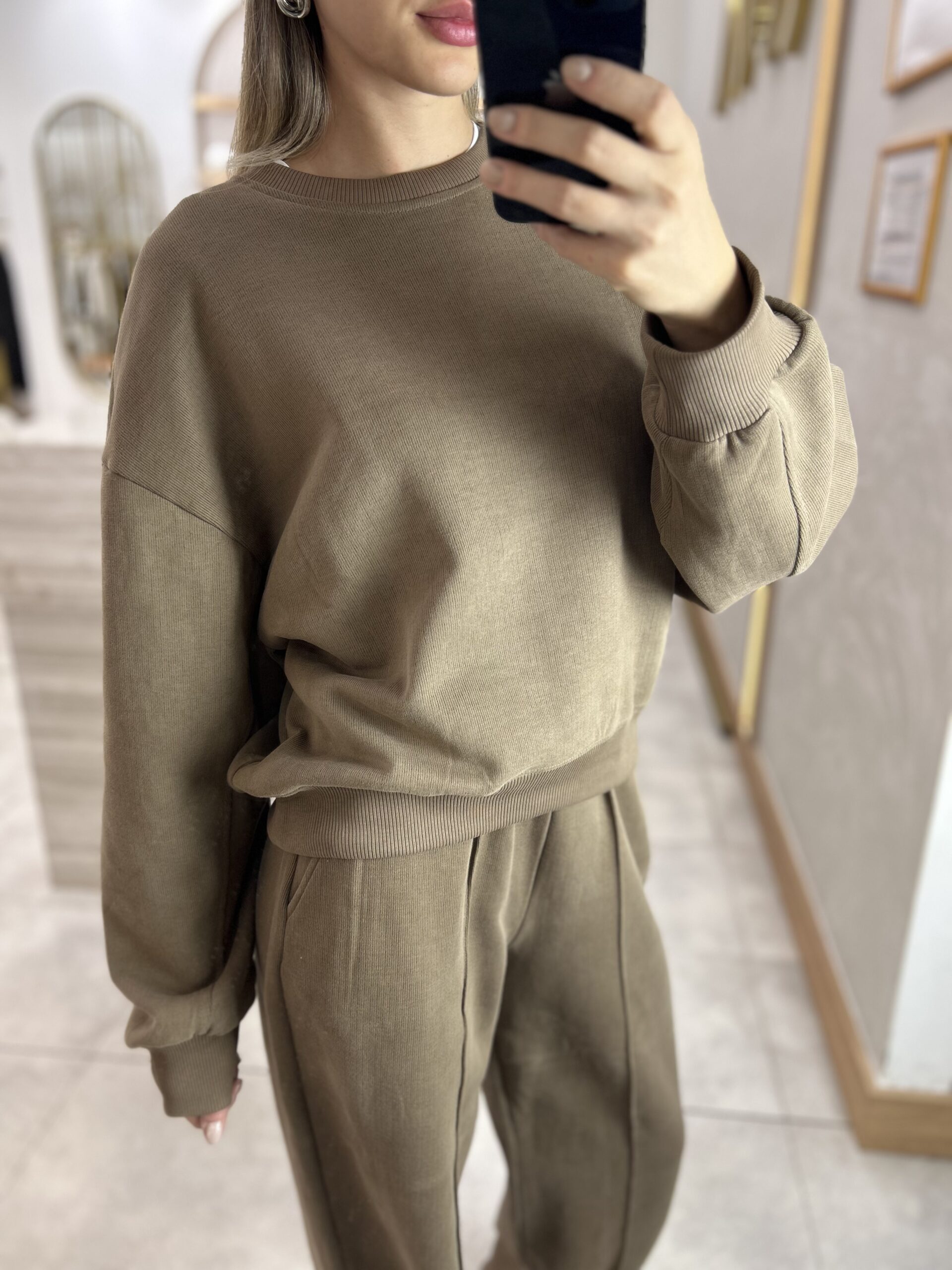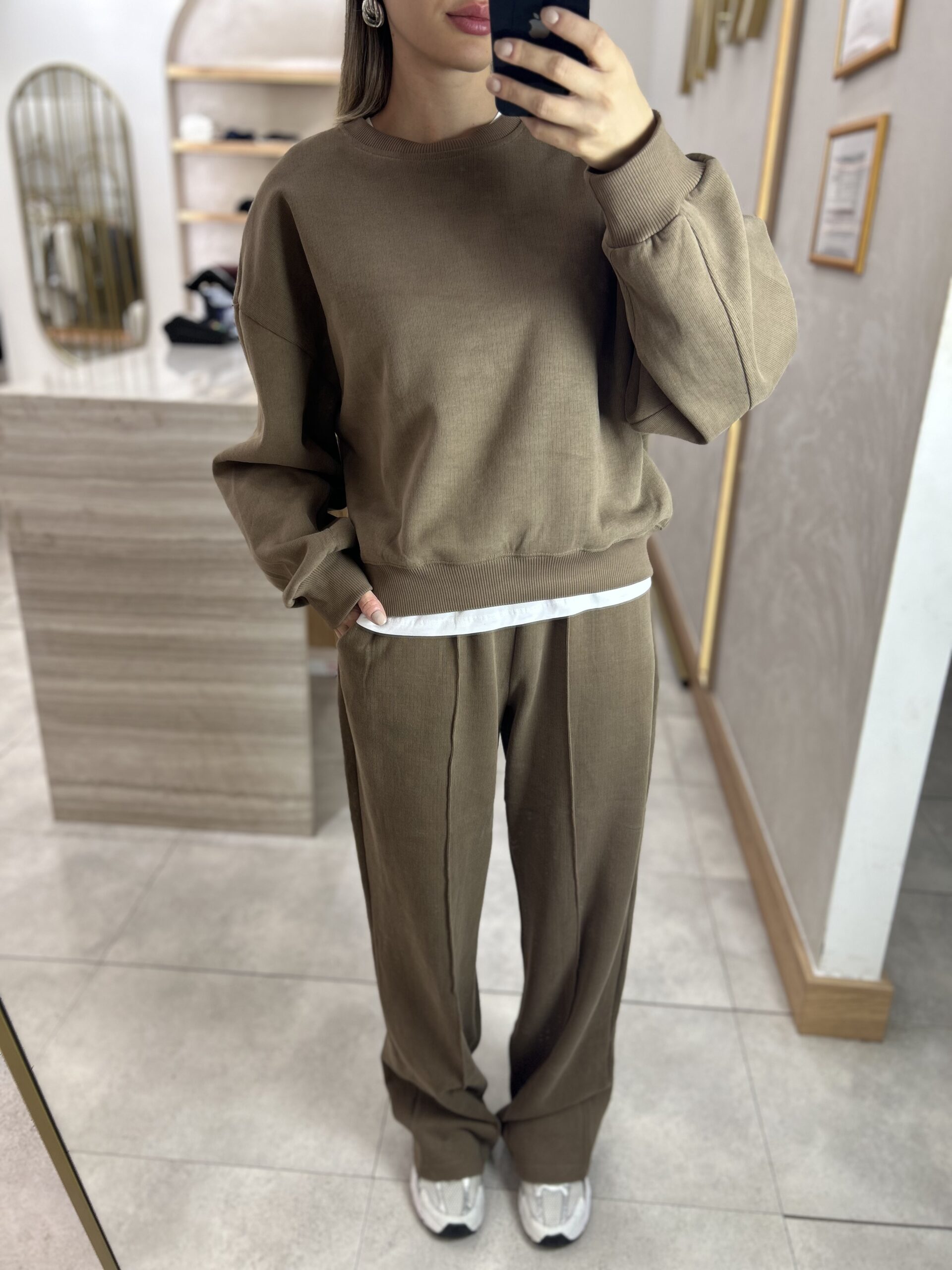 MARKA MODEL KAPÜŞONLU TRİKO SWEAT TAKIM VİZON