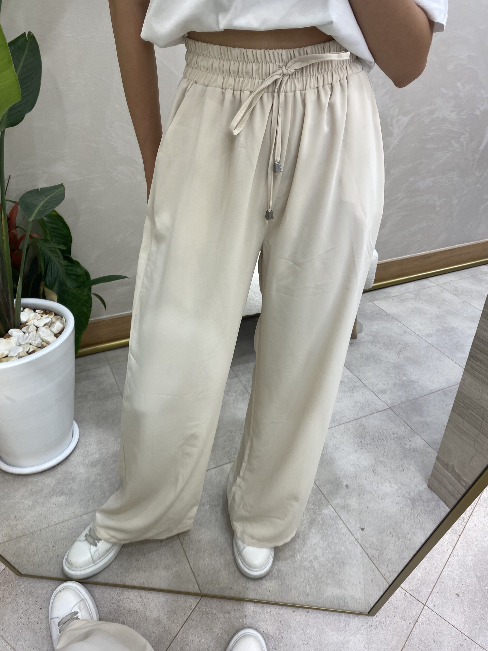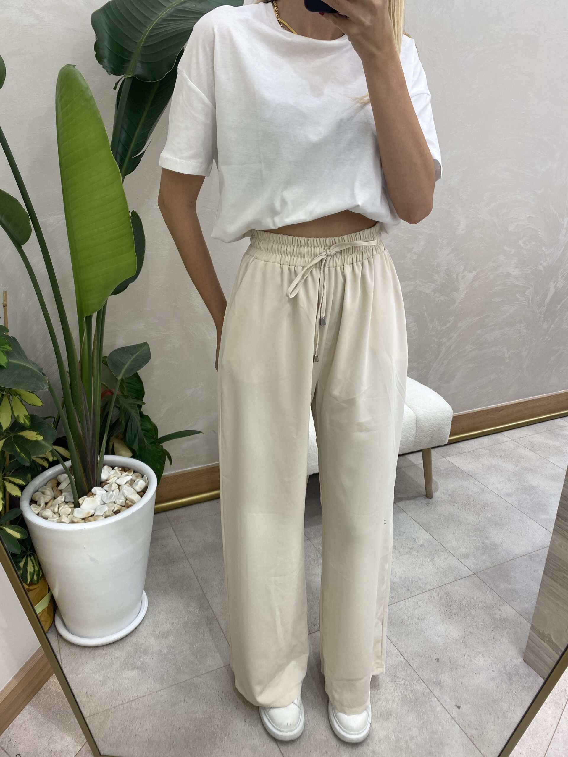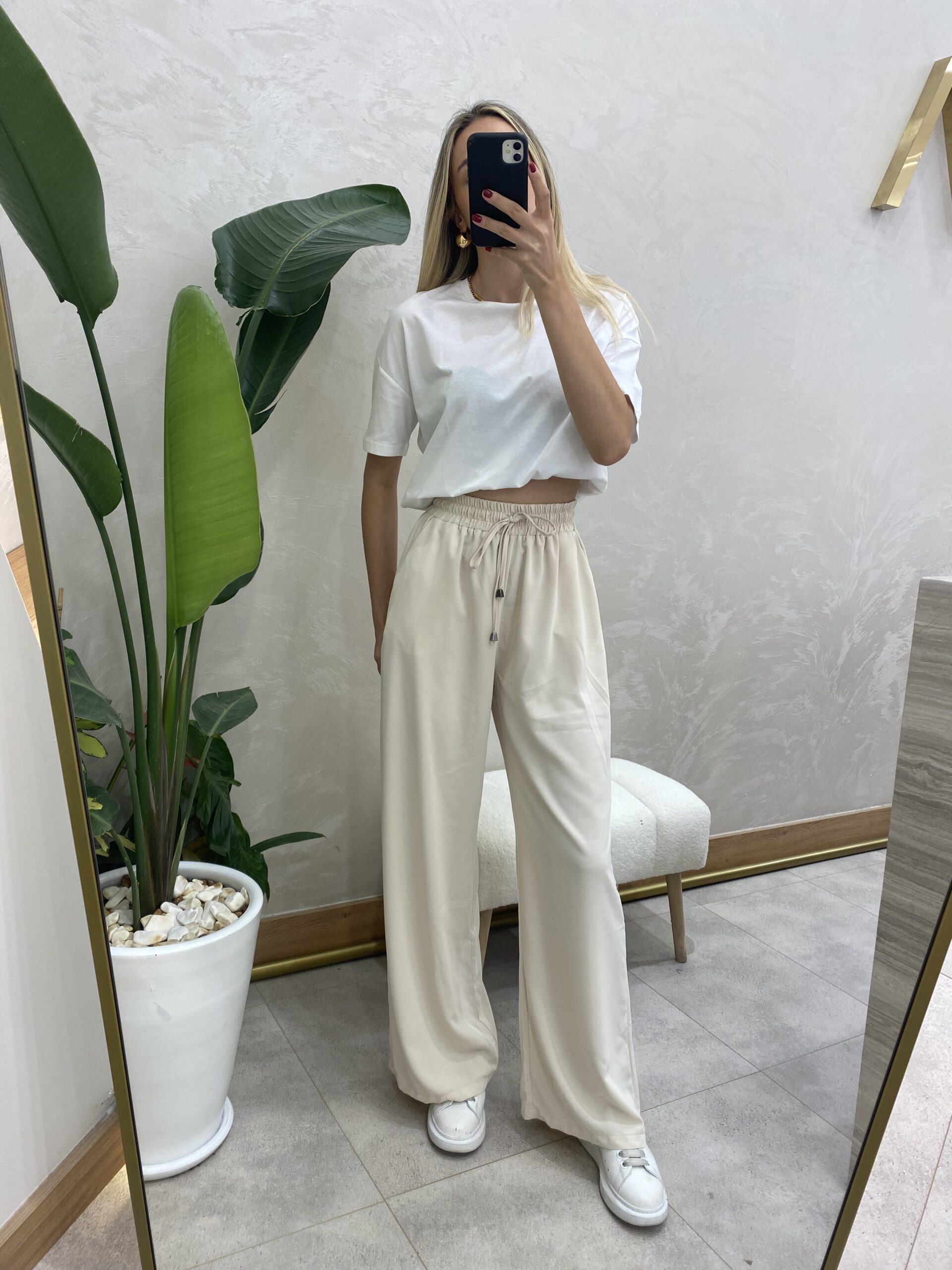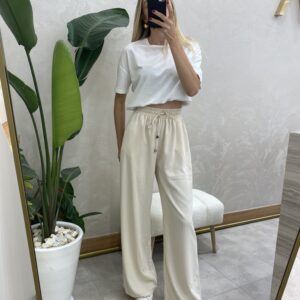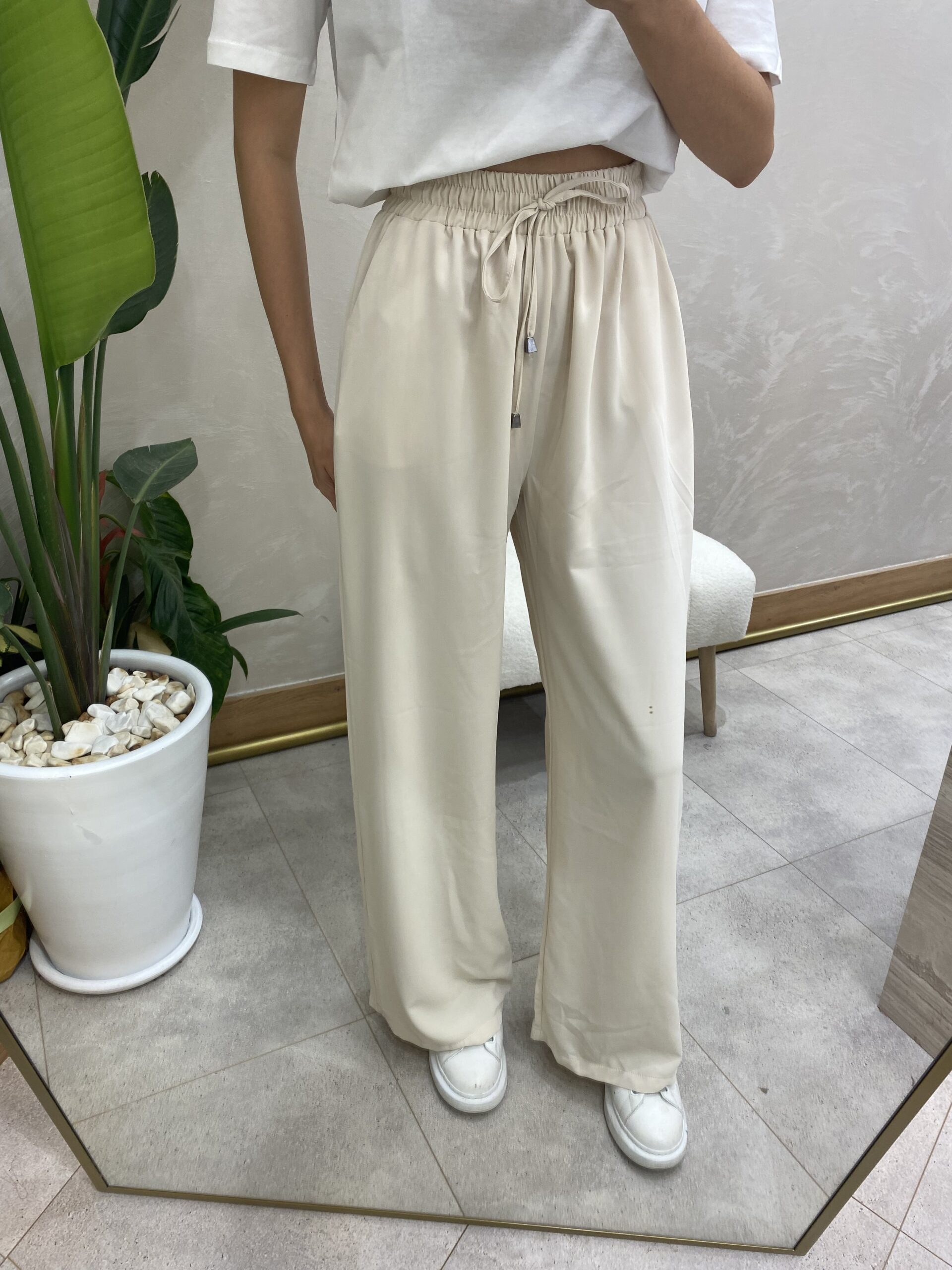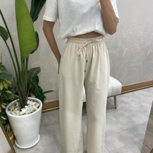 RAHAT KESİM BELİ LASTİKLİ PANTOLON KREM
