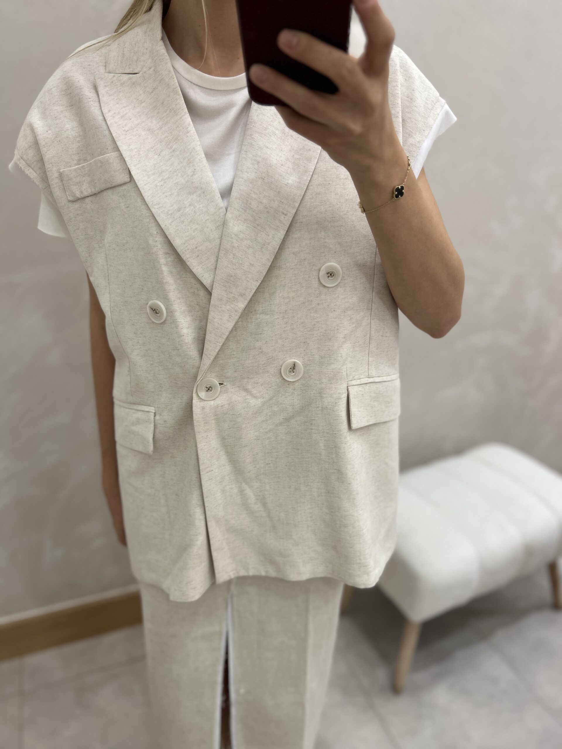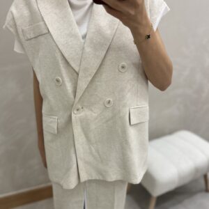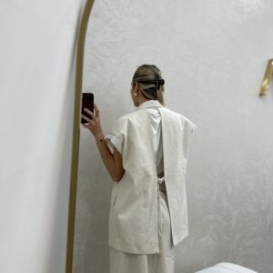 Tasarım Keten Sırt Dekolteli Yelek